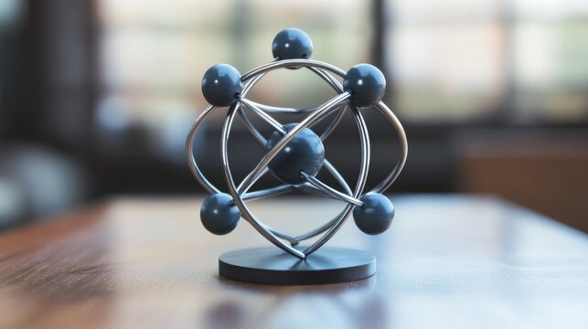 Futuristic science background with molecular model of atom structure, glowing particles, and interconnected lines, abstract biotechnology and nanotechnology concept for medical and research applicatio