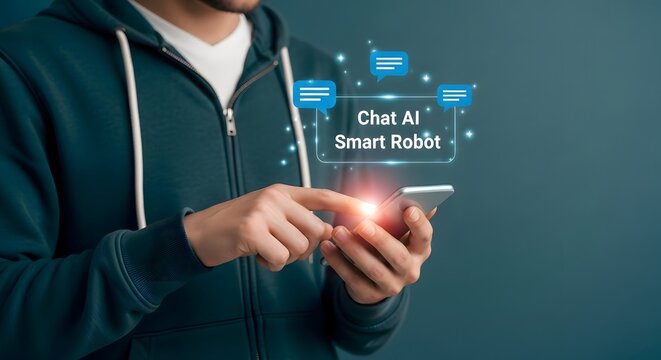 Artificial intelligence concept with student using smartphone