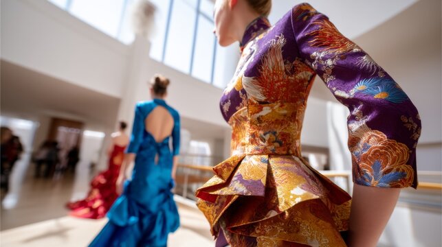 Cultural Appropriation Awareness: Modern Fashion Show with Morning Light, High-Angle Shot on White Background