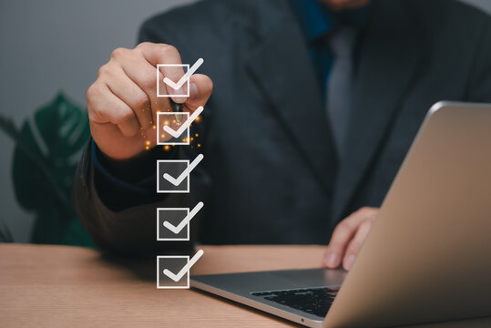 Survey form check online concept. Check marks on checklist evaluate questionnaire or answering questions. Customer Experiences and satisfaction performance.digital poll election research.