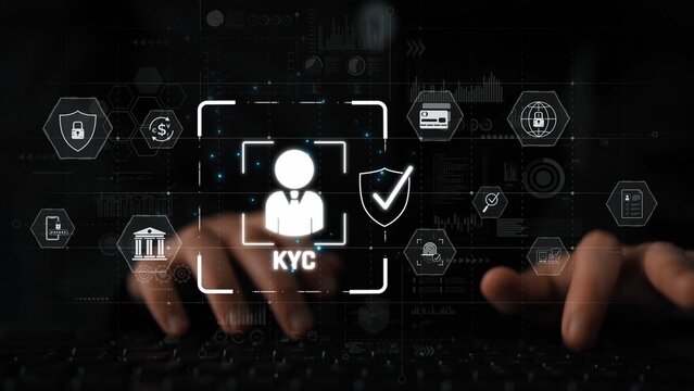 Digital KYC verification with biometric scan, ID authentication, and financial security icons representing identity verification, secure onboarding, fraud prevention, and compliance Marrow