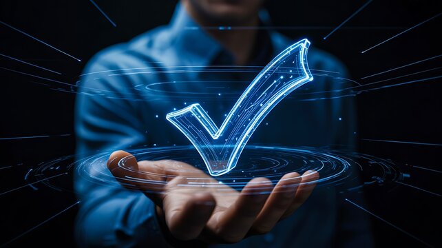 Business approval concept with digital check mark in hand