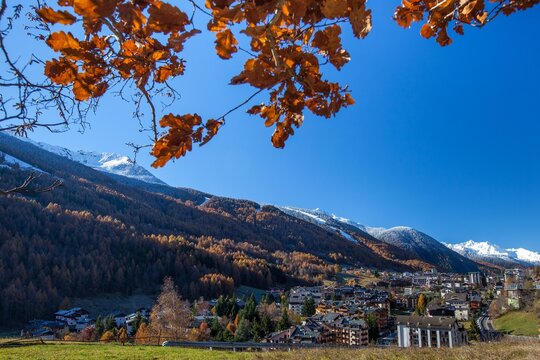 The bright colors of the autumn painting the popular ski resort of Aprica in Valtellina Orobie Alps, Sondrio, Lombardy, Italy Europe