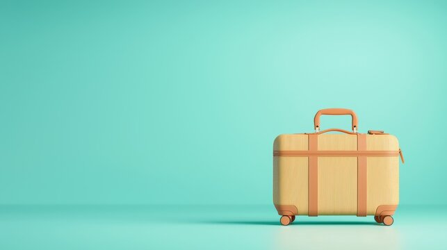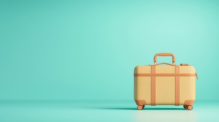 Travel essentials yellow suitcase on aqua background for vacation preparation minimalist style