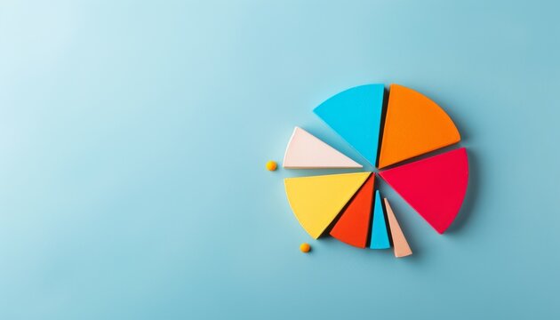 A Yellow, Red, and White Pie Chart on a Turquoise Background