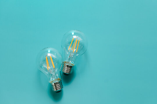 Electricity and energy saving .Energy saving light bulbs on a blue background.price of electricity.Payment of electricity bills. View from above.Crisis in the energy sector