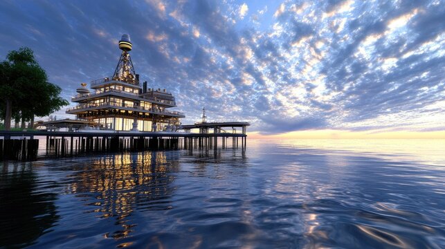 Turquoise night water reflection showing vertical teal light bands and gentle ripples