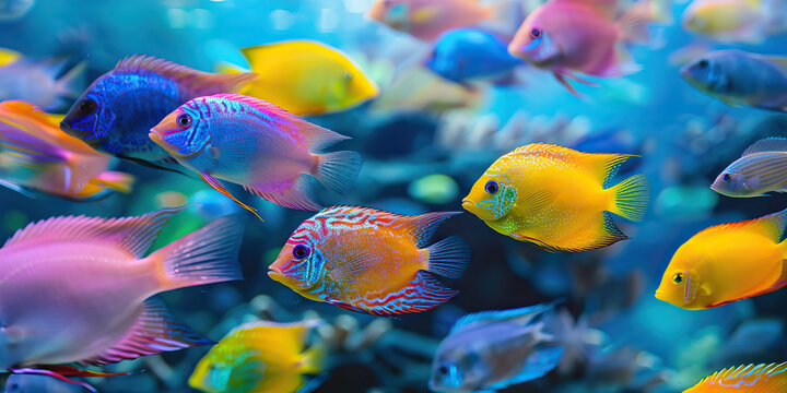 Underwater tunnel showcasing vibrant coral reef and diverse fish species, creating an immersive and awe-inspiring experience, ideal for aquarium or marine life concepts