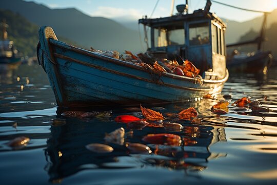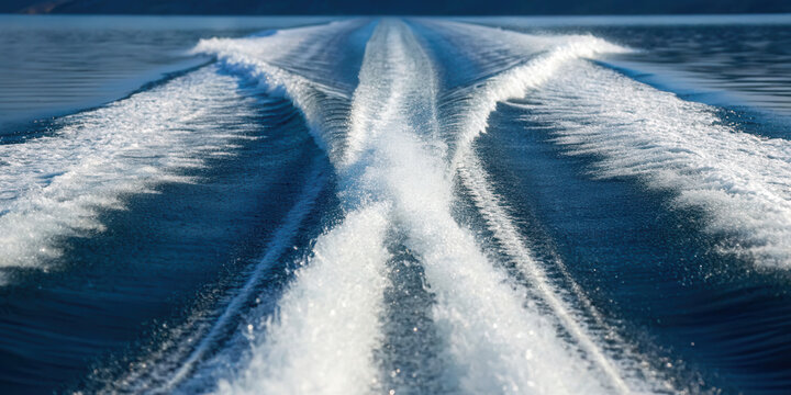 Water sports scuba diving competition concept. Ripples in water created by a moving boat, showcasing a serene aquatic landscape.