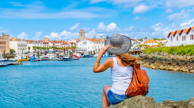 Woman traveling in France- Saint Jean de Luz- Basque country, Nouvelle aquitaine