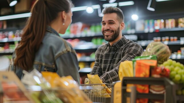 Customer paying at a supermarket checkout stock photo --ar 16:9 --raw --v 6 Job ID: cdb2a92e-6ebd-4d62-a0b1-ff4769861093