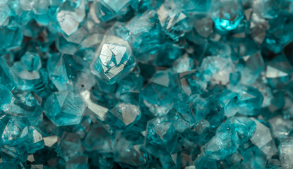 Close up shot detailed aquamarine crystal mineral stone. shiny surface of precious stone mineral crystals in the natural environment