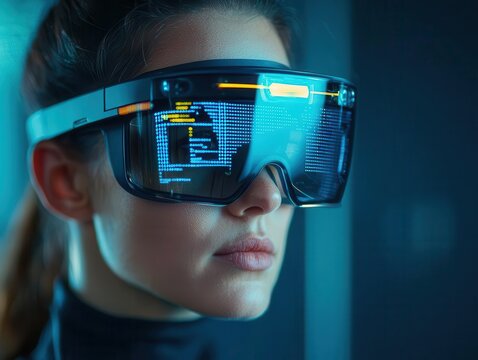 Woman Using AR Glasses to View Holographic Luxury Products