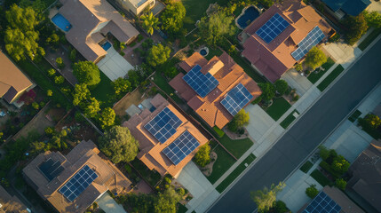 Sustainability icons overlay landscape at sunset