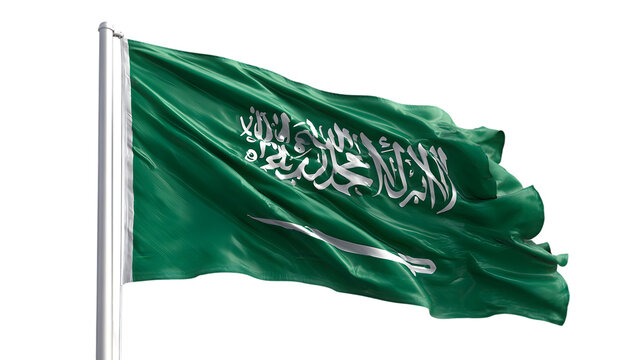 A vivid image showcasing the saudi arabian flag gracefully waving against a black background outdoors