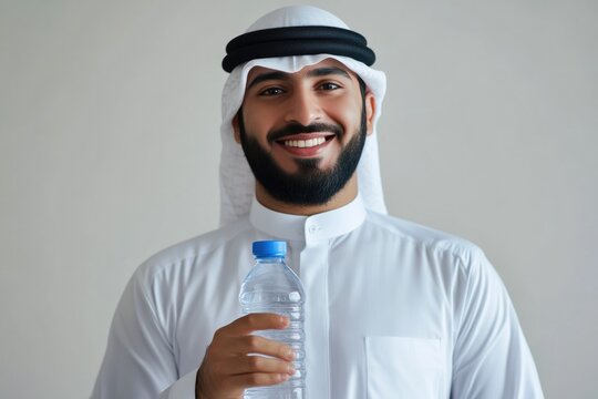 Middle Eastern man in traditional white kandura and black agal, side profile portrait with strong facial features, cultural identity expression, modern Arab fashion, isolated background, minimalist li