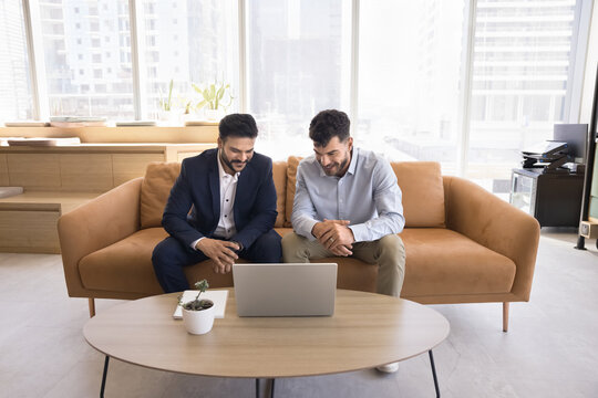 Successful business partners at office using tablet