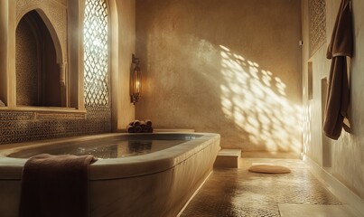 Arches of the palace. A stage with a golden arabic pattern.