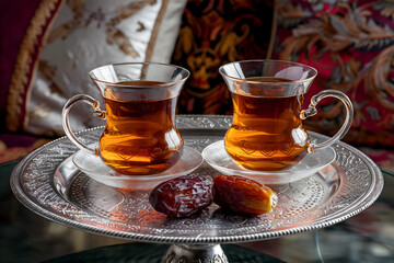 arabic glasses of tea on a silver plate