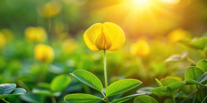 Yellow arachis pintoi flower in the morning sun