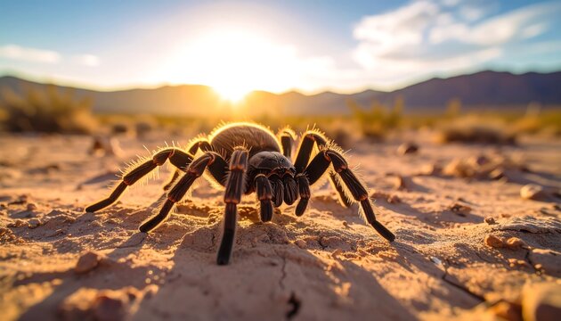 Tarantula Sunset Desert Closeup.