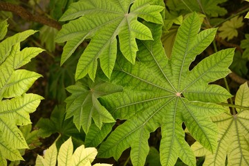 Ming Aralia leaves background.Polyscias guilfoylei plant or the Geranium Aralia in a garden.