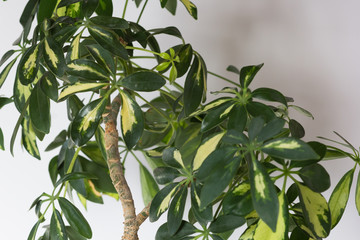 Crown of leaves Schefflera arboricola or dwarf umbrella tree named on the white background