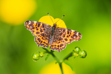 The Map butterfly in a natural environment. Summer black and white variant. Araschnia levana f. prorsa.