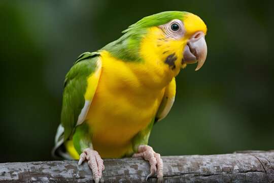 Golden-capped Parakeet Perched: A vibrant Golden-capped Parakeet, with its striking yellow and blue plumage, sits serenely on a weathered branch. Its captivating gaze draws the viewer in.