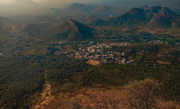 Village around Mountains Aravalli Range, Udaipur taken from Sajjangarh monsoon palace