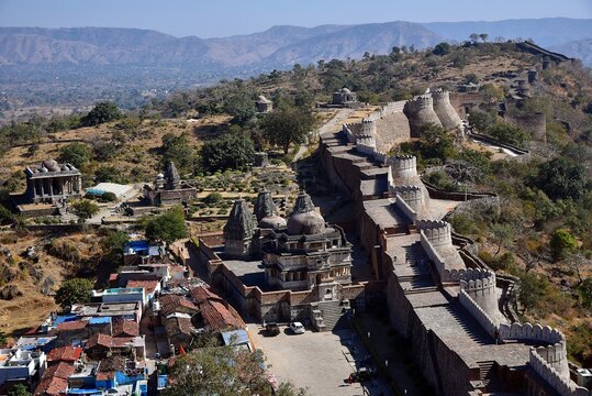 A view of the Kumbhalgarh wall. The second-longest wall in the world, Rajasthan, India. Kumbhalgarh, known as the Great Wall of India, is a fortress on the westerly range of Aravalli Hills.