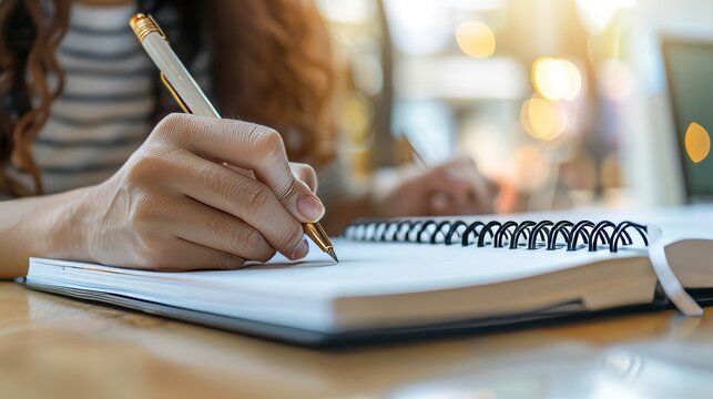 Schreibende Hand im Notizbuch – Kreativer Denkprozess und Organisation