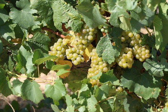Delicious yellow grape in French grape field.