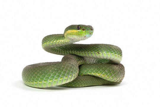 Trimeresurus Insularis closeup on isolated background, Indonesian viper snake closeup