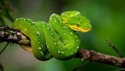Green tree python coiled reptile snake exotic animal wildlife nature serpent closeup wildlife photography