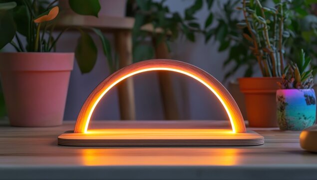 Modern Wooden Arc Lamp with Luminous Edge