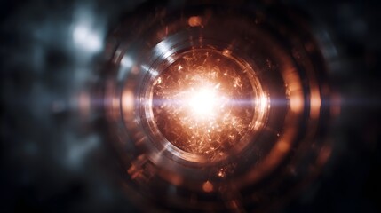Intense energy core glows with chaotic particles within a circular metallic technological device