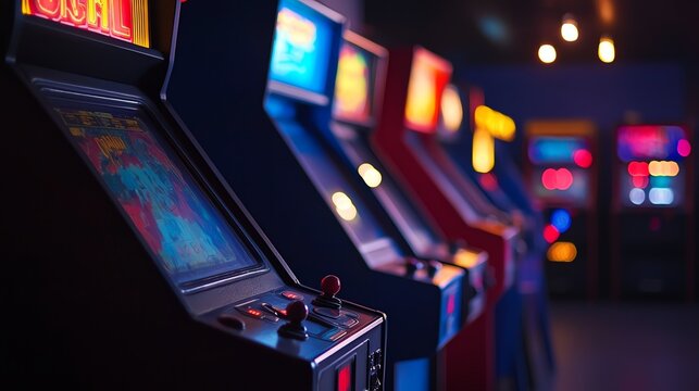 Retro Arcade: An old-fashioned arcade game cabinet with a vintage joystick and buttons.