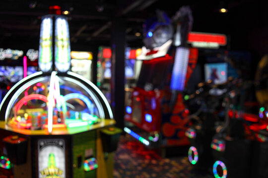 Blurry Image Of Slot Machines In Casino