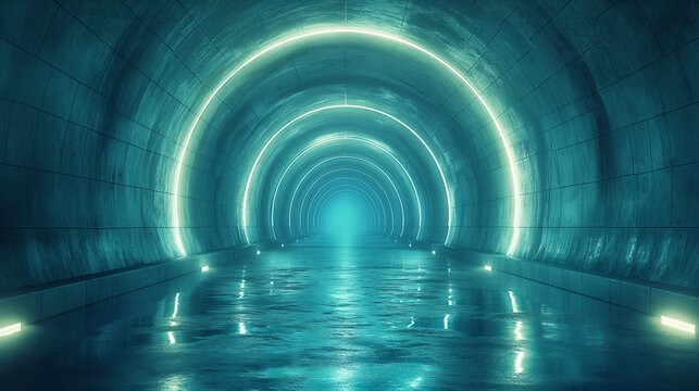 Futuristic neon tunnel with dynamic lighting