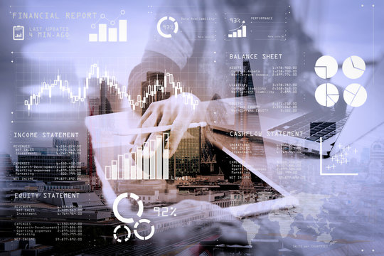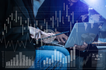 Global Strategy Connection Virtual Icon Graph Interface Diagram Marketing Research.Meeting Team of business analysts discussing the business strategy in office room.