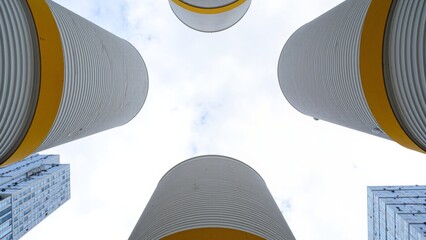 Modern architecture building facade viewed from below