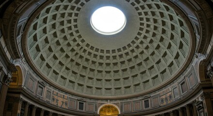 Circular oculus framing bright blue sky with sunbeam through classical dome geometry