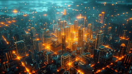 Futuristic smart cityscape with digital IoT connectivity, network infrastructure, and advanced architectural design – Conceptual illustration