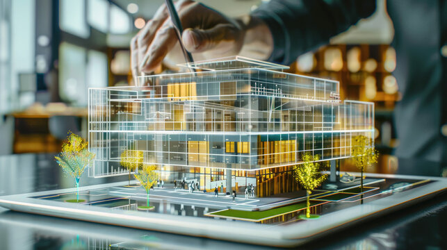 Architectural design meeting with vr and tablet technology