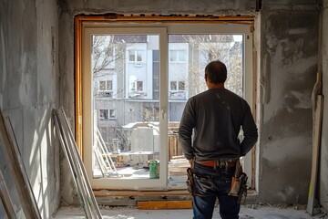Building worker and architect discussing build drawing on construction site. Two industrial engineers wearing safety hard hat have meeting on commercial building structure