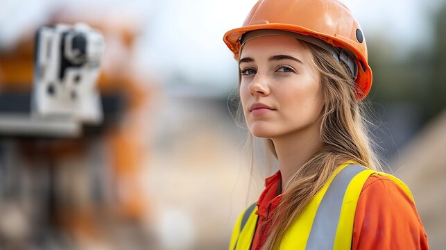 Confident woman building site engineer surveyor checking works with robotis EDM : Generative AI