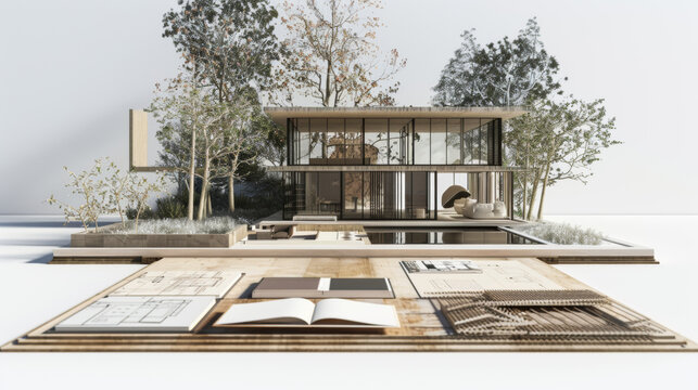An innovative interior design layout with an architectural model, showcasing home insurance benefits