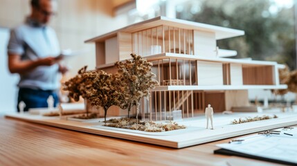 Architect engaged with scale model and design projects in office