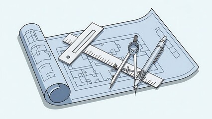 Engineering drafting tools on blueprint.